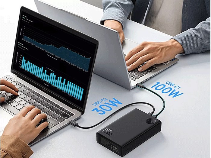 شارژ سریع 140 واتی با قابلیت پشتیبانی از پروتکل های شارژ سریع SCP, QC. PD دارای 1 پورت ورودی جهت شارژپاوربانک Type-C دارای سه پورت خروجی USB-A۱ و Type-C 1 و Type-C 2 نوع باتری: لیتیوم پلیمر