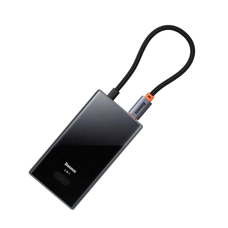 از آنجا که بیشتر لپ تاپ ها و کامپیوترها دارای تعداد کافی درگاه خروجی برای استفاده کاربر نیستند، به همین دلیل است که نیاز به استفاده از هاب ها به شدت احساس می شود. هاب 6 پورت USB-C بیسوس مدل WKYY030213 در مجموع 6 پورت متفاوت و کاربردی شامل سه عدد پورت 0.USB3 ، یک عدد پورت HDMI، یک عدد پورت RJ45، یک عدد پورت TYPE-C PD و یک کانکتور Type C است. پورت های USB از نوع USB3.0 بوده که دارای سرعت 5Gbps می باشد که می تواند با سرعت بالا انتقال اطلاعات را انجام دهد. و یا دستگاه های دیگر مانند (موس، کیبورد و ...) را از طریق این پورت ها به سیستم خود متصل کنید. پورت HDMI برای انتقال تصویر بوده که این پورت از کیفیت 60Hz و 4K پشتیبانی می کند و می توانید تصاویر را با وضوح بالا مشاهده کنید. پورت Type C این هاب از قابلیت PD پشتیبانی می کند. PD یا Power Delivery قابلیتی است که اجازه میدهد شما بتوانید از طریق پورت تایپ سی لپ تاپ خود را شارژ کنید که توان حداکثری پورت تایپ سی 100 وات است. پورت LAN یا RJ45 برای اتصال از طریق کبل شبکه به اینترنت کاربرد دارد. شما می توانید از طریق پورت شبکه با سرعت های 1000Mbps/100Mbps/10Mbps به اینترنت وصل شوید. فریم دور بدنه هاب 6 پورت USB-C بیسوس مدل WKYY030213 از جنس آلیاژ آلومینیوم بوده که در برابر ضربات و آسیب مقاوم است.